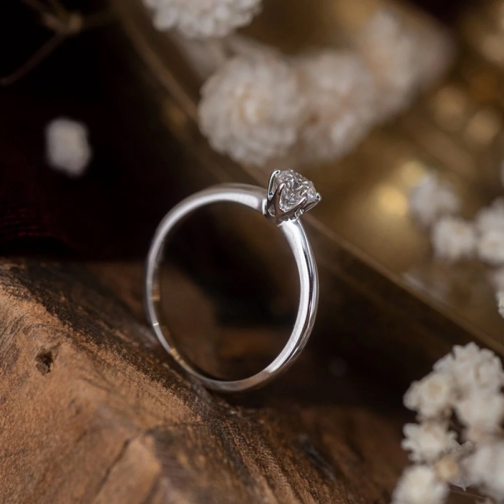 Bu 6 tırnaklı klasik tektaş yüzük merkezde F rengi 0.37 karat HRD sertifikalı pırlanta ile imal edilmiştir.