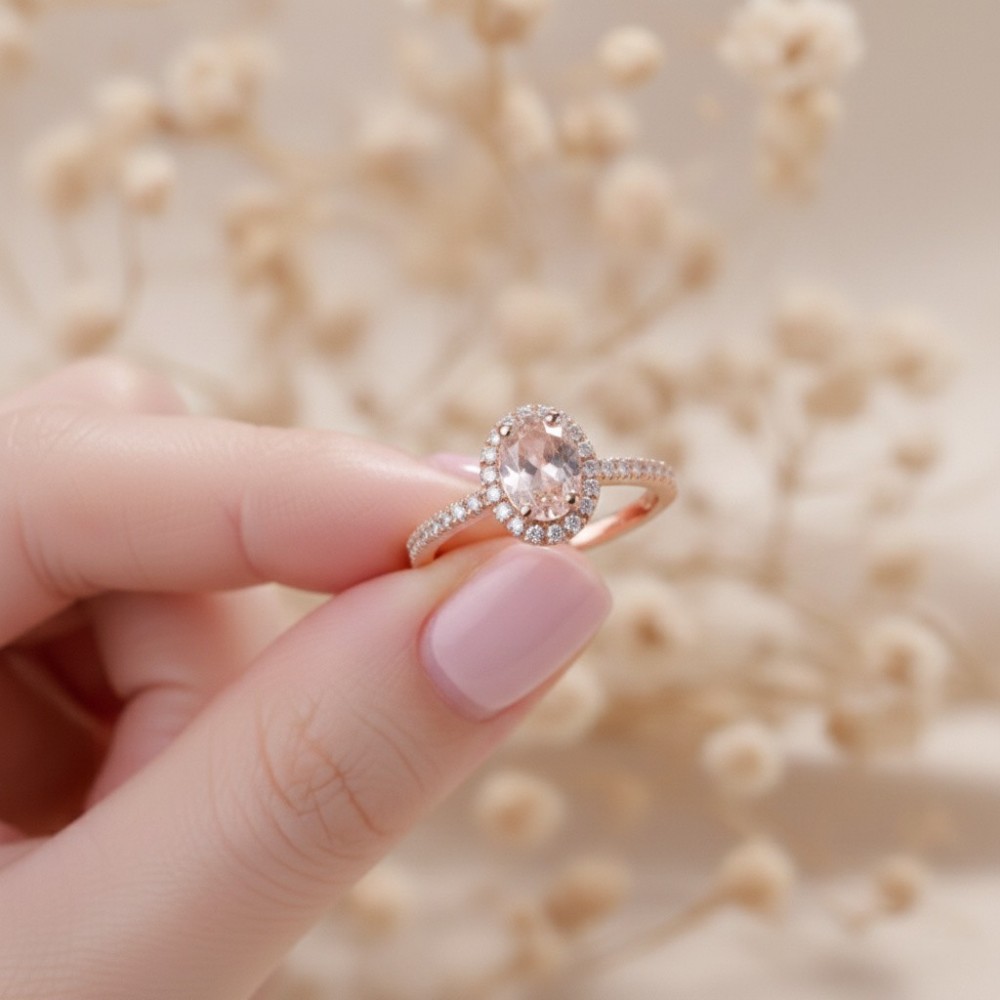 Morganite & Diamond Halo Engagement Ring SS0110