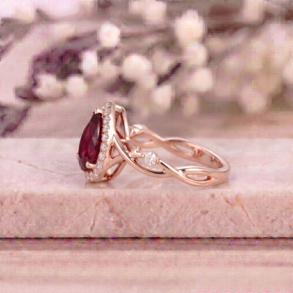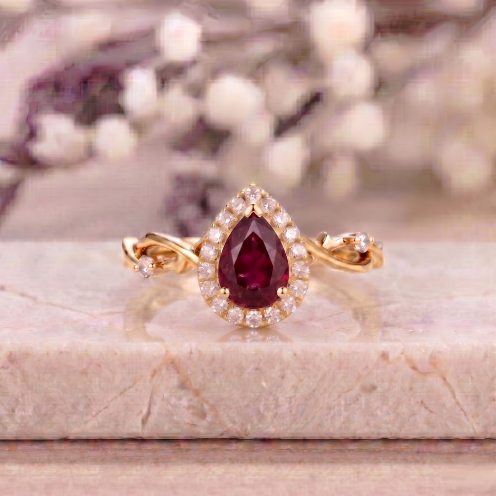 Kırmızı Damla Yakut Pırlanta Tasarım Yüzük