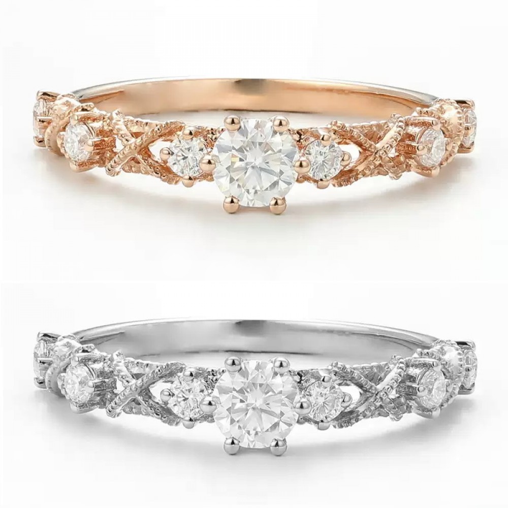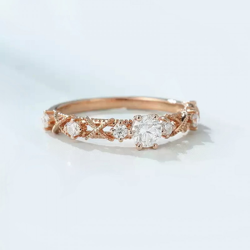 Bu Vintage tasarım yüzükte merkezde 0.33 karat HRD sertifikalı pırlanta ve yanlarında 0.18 karat pırlanta ile imal edilmiştir.