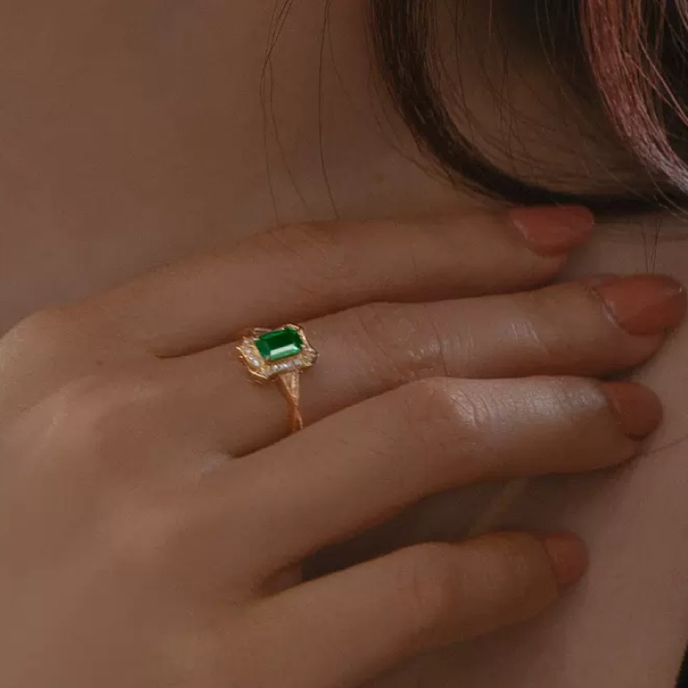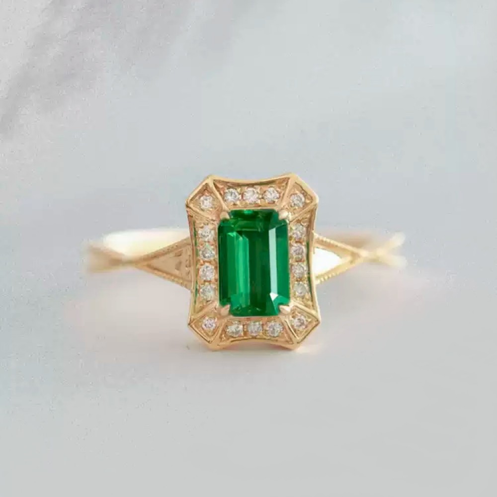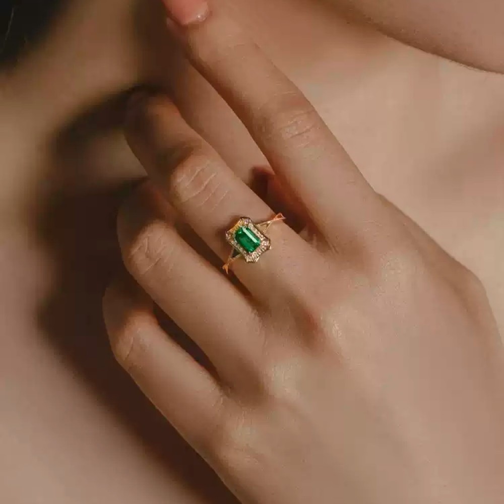 Zümrüt Ve Pırlanta Art Deco Tasarım Yüzük SS0207